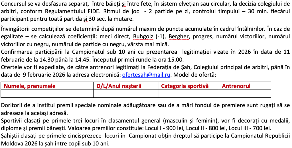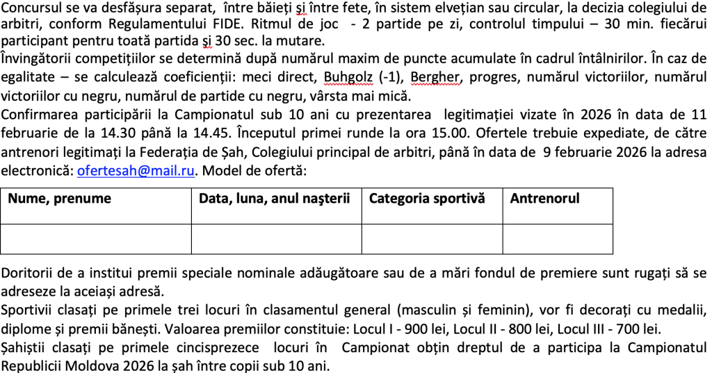 Concursul se va desfășura separat, băieții aparte și fetele aparte.